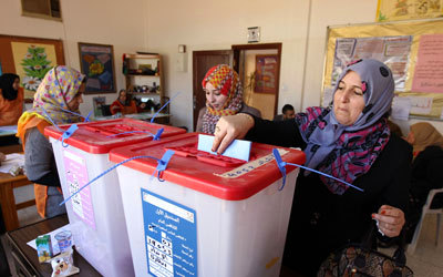 ليبية تدلي بصوتها في الانتخابات بأحد مراكز الاقتراع في بنغازي. أ.ف.ب