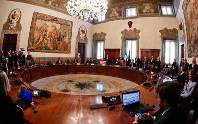 ماتيو رينزي يترأس أول اجتماع لحكومته التي يتألف نصفها من النساء والشخصيات الجديدة. أ.ف.ب