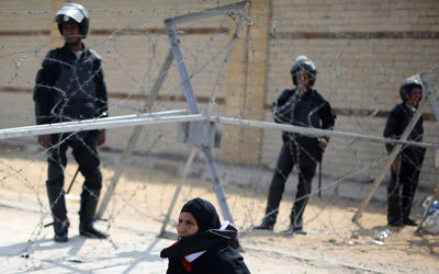 عناصر من الشرطة المصرية أمام مقر أكاديمية الشرطة في القاهرة. رويترز