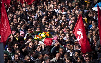 4000 فلسطيني شاركوا في تشييع الشهيد وشحة في بيرزيت. أ.ب