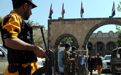 جنود يمنيون في حراسة مدخل وزارة الداخلية بصنعاء. إي.بي.إيه
