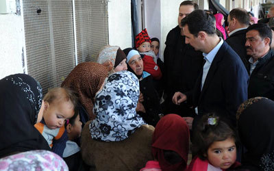 الأسد يتفقد مركزاً للمهجّـــرين في ريف دمشق ويتعهد بمحاربــة الإرهاب