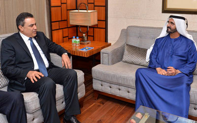استقبل صاحب السمو الشيخ محمد بن راشد آل مكتوم، نائب رئيس الدولة رئيس مجلس الوزراء حاكم دبي، في دبي، مساء أمس، رئيس الوزراء التونسي مهدي جمعة والوفد المرافق. واستعرض سموه ورئيس الوزراء الضيف علاقات التعاون بين دولة الإمارات والجمهورية التونسية، خصوصاً في مجالات الاستثمار والسياحة والتبادل التجاري.