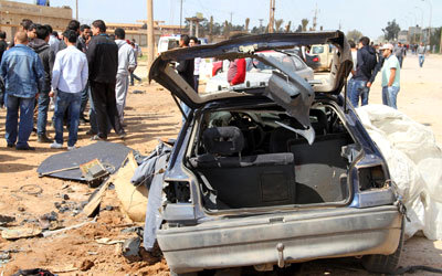 موقع انفجار قنبلة خارج قاعدة للجيش في مدينة بنغازي. إي.بي.إيه