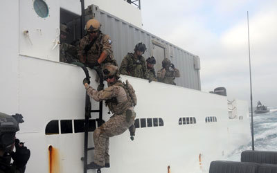 صورة وزعتها البحرية الأميركية للفرقة التي أعادت ناقلة النفط. أ.ف.ب