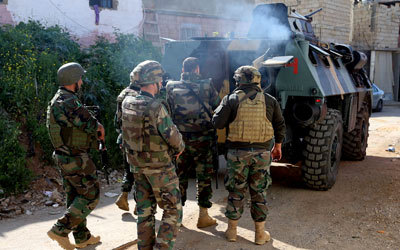عناصر من الجيش اللبناني في منطقة الاشتباكات ببيروت. أ.ب