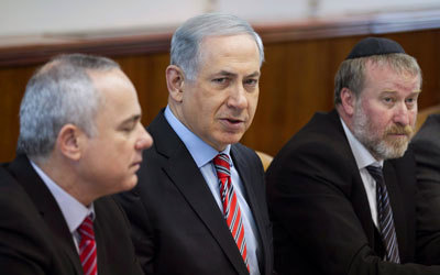 نتنياهو خلال اجتماع مجلس الوزراء أمس. إي.بي.إيه