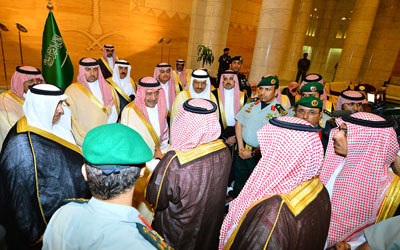 الأمير مقرن خلال تلقيه المبايعة أمس. رويترز