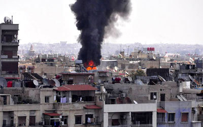ومنذ ثلاثة أيام، عادت مجموعات المعارضة إلى قصف أحياء العاصمة بالهاون، وترافق ذلك مع تصعيد القوات النظامية عملياتها العسكرية في ريف دمشق، لاسيما في منطقة الغوطة الشرقية المحاصرة من قوات النظام منذ أشهر. وأفاد المرصد باستمرار «الاشتباكات العنيفة بين القوات النظامية ومقاتلي الكتائب في بلدة المليحة ومحيطها». ورجح مدير المرصد رامي عبدالرحمن أن يكون هذا التصعيد يهدف إلى اقتحام البلدة. وقال ناشط في الغوطة يقدم نفسه باسم أبوصقر مأمون، لـ«فرانس برس» عبر الانترنت، «هناك محاولات لقوات الأسد لاقتحام البلدة بدأت منذ يومين والجيش الحر يتصدى لها». وأضاف أن الجيش النظامي مدعوم من دبابات وعربات شيلكا وطيران ميغ، ومن جيش الدفاع الوطني وميليشيات عراقية مثل «لواء أسد الله الغالب»، مشيراً إلى ان القصف العنيف دفع بالعديد من سكان البلدة إلى النزوح إلى أماكن مجاورة، وأن المعارك عنيفة في محيط البلدة. وكان المرصد وناشطون أشاروا، أول من أمس، إلى محاولات من قوات النظام لاقتحام البلدة التي تتعرض لقصف جوي ومدفعي.