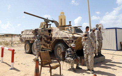 قوات ليبية في نقطة حراسة غرب مدينة بنغازي. رويترز