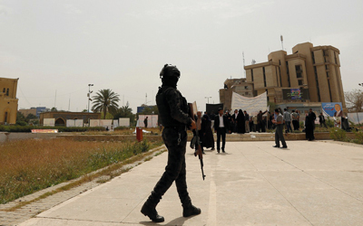 جندي عراقي في دورية مراقبة في ساحة الفردوس وسط بغداد. أ.ف.ب