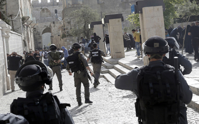 اقتحمت الشرطة الإسرائيلية، أمس، الحرم القدسي الشريف، لتفريق رماة حجارة فلسطينيين، يعارضون أي محاولات يهودية للصلاة في المسجد الأقصى. وسارعت حركتا فتح وحماس إلى التنديد بالممارسات الإسرائيلية في المسجد، وحذرتا من تداعيات خطيرة لهذه الممارسات.