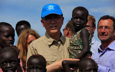 كي مون في جنوب السودان لمواصلة الضغط من أجل السلام