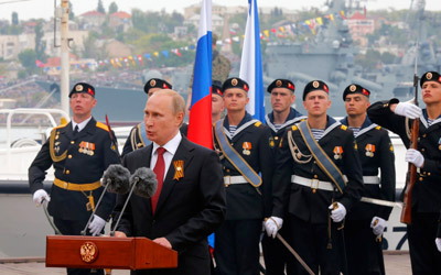 في المقابل، قال بوتين في كلمة قصيرة بعد مشاهدة عرض عسكري في ميناء سيفاستوبول، على البحر الأسود، بمناسبة عيد الانتصار على النازيين «أنا متأكد أن عام 2014 سيسجل في سجلات بلادنا بأسرها كعام قررت فيه الأمم التي تعيش هنا بحزم أن تكون جنباً إلى جنب مع روسيا، مؤكدة على الإخلاص للحقيقة التاريخية وذاكرة أجدادنا». وأضاف «هناك الكثير من العمل الذي ينتظرنا، لكننا سنتغلب على كل الصعاب لأننا معا، وهو ما يعني أننا أصبحنا أقوى»، وأوضح أن عودة القرم إلى روسيا «مطابقة للحقيقة التاريخية».