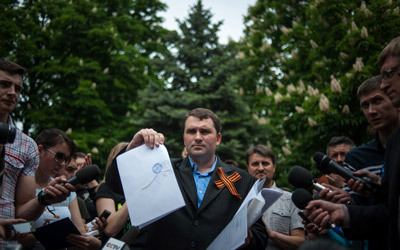 ودعا المتمردون المسلحون المؤيدون لروسيا الذين يسيطرون على كبرى مدن حوض دونباس الحدودي مع روسيا، السكان وعددهم نحو 7.3 ملايين نسمة الى تأييد مشروعهم لإعلان استقلال «جمهوريتين شعبيتين» في دونيتسك ولوغانسك.