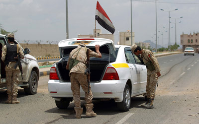 نقطة تفتيش عسكرية في إحدى ضواحي صنعاء. أ.ف.ب