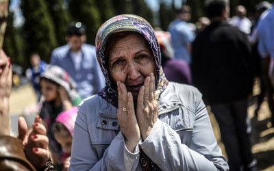تركية تنتحب عند زيارتها المقبرة التي دفن فيها ضحايا منجم الفحم. أ.ف.ب