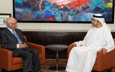 عبدالله بن زايد يستقبل سرتاج عزيز. وام