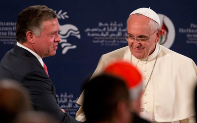 الملك عبدالله خلال استقباله البابا في عمّان. أ.ب