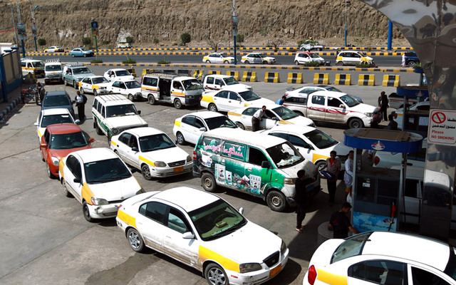 صفوف من السيارات أمام محطة للوقود في العاصمة صنعاء. أ.ف.ب
