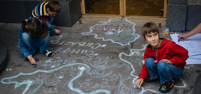 أطفال لاجئون من شرق البلاد يرسمون خرائط مناطقهم ومدنهم التي تعاني الاشتباكات. إي.بي.إيه