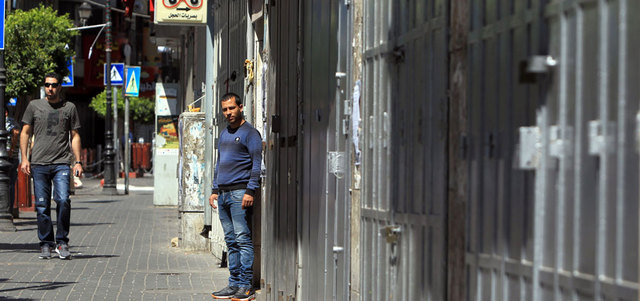 المتاجر في مدينة رام الله أغلقت تضامناً مع الأسرى المضربين عن الطعام في سجون الاحتلال. أ.ف.ب