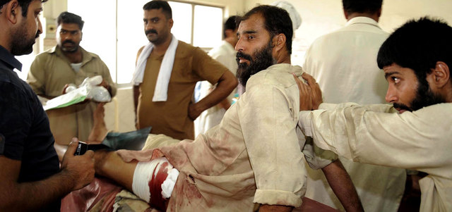 أحد جرحى الاشتباكات يتلقى العلاج في مستشفى لاهور. إي.بي.إيه