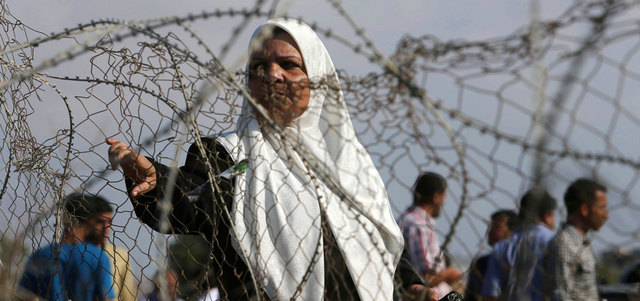 فلسطينية خلف السلك الشائك في رفح انتظاراً للعبور إلى غزة. رويترز