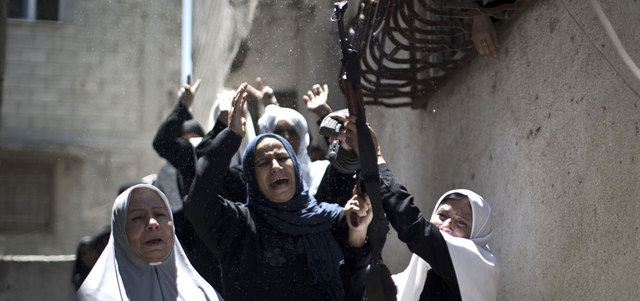قريبات أحد عناصر «حماس» خلال تشييعه في غزة أمس. أ.ف.ب