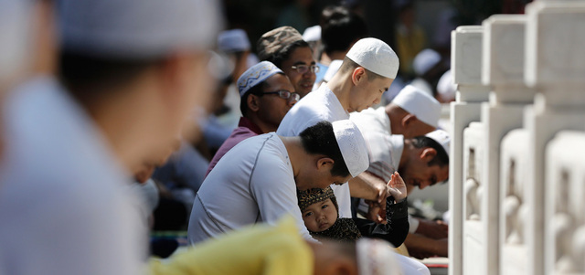 مسلمون صينيون يصلون في أحد مساجد بكين. أرشيفية ــــ غيتي