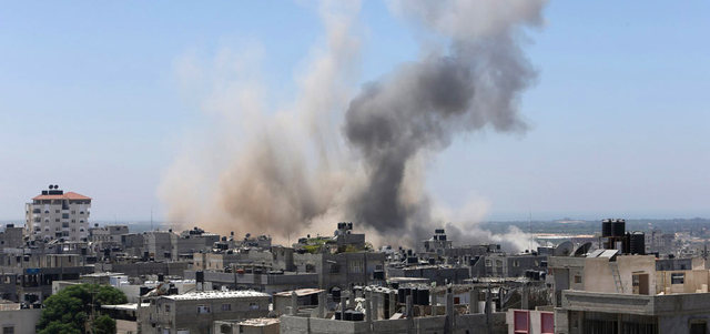 ارتفاع أعمدة الدخان جنوب قطاع غزة جراء قصف إسرائيلي قالت حكومة نتنياهو إنه يستهدف الأنفاق في رفح. رويترز