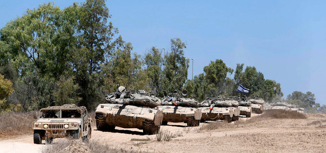 دبابات الاحتلال خلال انسحابها أمس من غزة. أ.ف.ب
