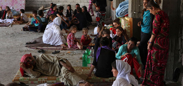 نازحون من الأقلية الإيزيدية فروا من سنجار إلى دهوك. رويترز