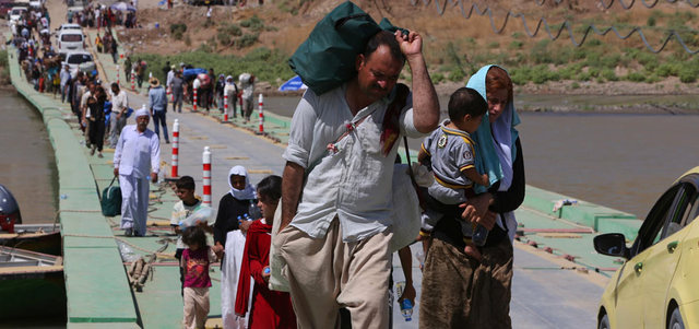 عراقيون من الأقلية الإيزيدية يفرون من العراق إلى سورية هرباً من المعارك مع «داعش». أ.ف.ب