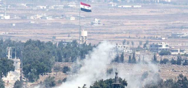 الدخان يتصاعد جراء اشتباكات بين القوات السورية والمعارضة بالقرب من معبر القنيطرة. أ.ف.ب