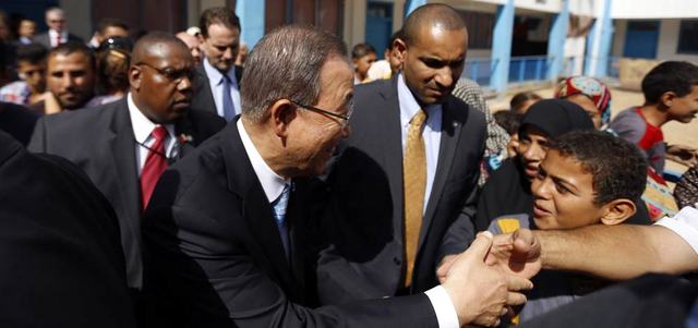 من جهة أخرى، أكد أمين عام الأمم المتحدة، بان كي مون، أن مشروع إعادة بناء قطاع غزة يحظى بقدر عال من الأهمية، حاثاً الجانبين الفلسطيني والإسرائيلي على ضرورة التوصل إلى اتفاق. وقال إن «الدمار الذي رأيته في قطاع غزة يفوق الوصف». وخلال زيارة إلى مدينتي رام الله والقدس المحتلة التقى كي مون رئيس الوزراء الفلسطيني رامي حمد الله، ورئيس الوزراء الإسرائيلي بنيامين نتنياهو، ودعا جميع الأطراف إلى وقف دورة المعاناة التي عملت على تأجيج التوترات في المنطقة.