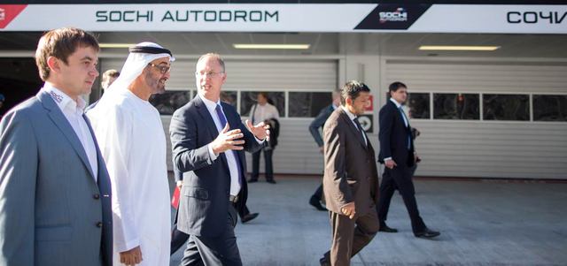 واستهل سموه الجولة بزيارة حلبة سوتشي لسباقات الفورمولا 1، حيث تعرف سموه من نائب المدير العام لسباق الجائزة الكبرى للفورمولا 1 سيرجي فوربويف، إلى المواصفات الفنية والتقنيات الحديثة المستخدمة في الحلبة التي يبلغ طول مضمارها 5.8 كيلومترات وتستوعب 55 ألف متفرج.