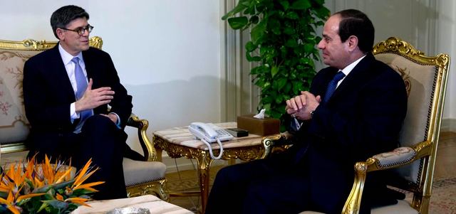 السيسي لدى استقباله وزير الخزانة الأميركي. أ.ب