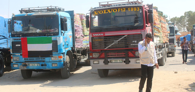 من قوافل المساعدات الإماراتية للمنكوبين في غزة. أرشيفية