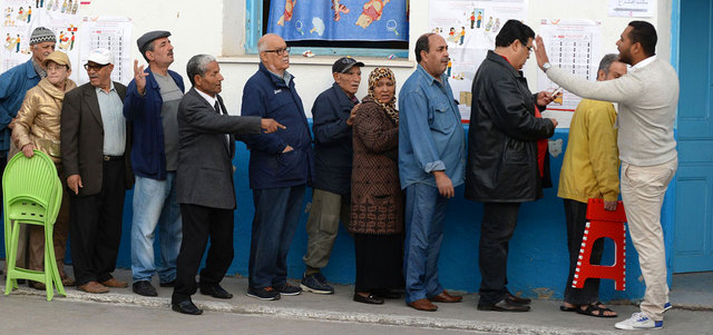 تونسيون يصطفون للإدلاء بأصواتهم في أحد مراكز الانتخابات في تونس. أ.ف.ب