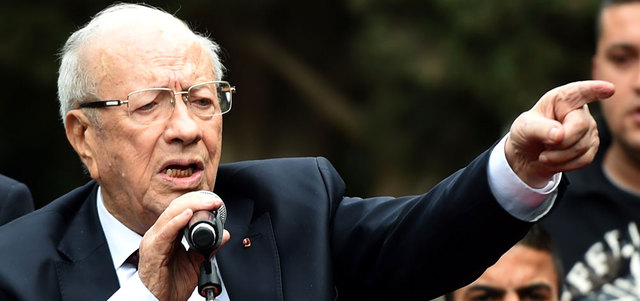 السبسي خلال تجمع انتخابي لأنصاره استعداداً لجولة الإعادة. أ.ف.ب