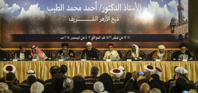 وقال في افتتاح مؤتمر دولي ينظمه الأزهر لمواجهة التطرف والإرهاب بحضور قادة دينيين من 20 دولة، إن «هذه الجرائم البربرية النكراء ما لبثت أن تدثرت بدثار هذا الدين الحنيف، في محاولة لتصدير صورة إسلامهم الجديد المغشوش بحسبانه ديناً جاء للناس بالذبح وقطع رأس كل من يخالفه أو تهجيره من دياره».