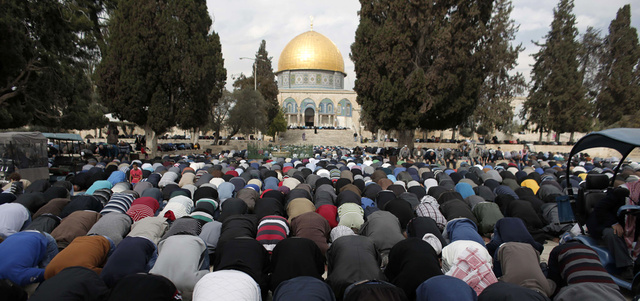 الآلاف يؤدون صلاة الجمعة في رحاب الأقصى وسط إجراءات عسكرية إسرائيلية. أ.ف.ب