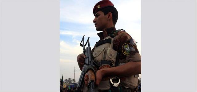 جندي عراقي يقف حارساً لتعزيز الأمن في كربلاء. إي.بي.إيه