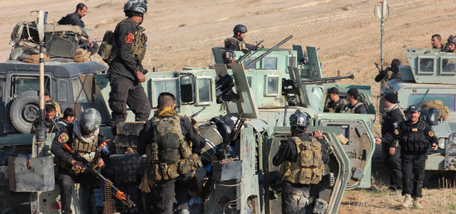 قوات عراقية قرب ديالى استعداداً لمعارك مع تنظيم «داعش» الأسبوع الماضي. رويترز
