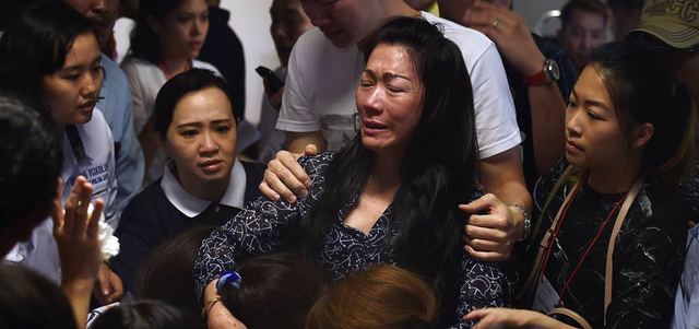 قريبة أحد ركاب الطائرة المنكوبة تبكي بمطار جواندا الدولي في سورابايا بعد مشاهدة التقارير الإخبارية التي تبين جثة مجهولة طافية في بحر جاوا. أ.ف.ب