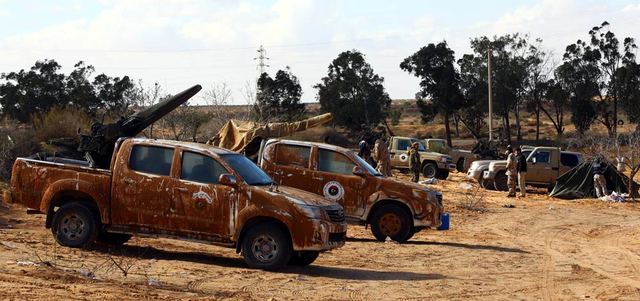 عناصر من ميليشيا فجر ليبيا خلال معارك مع الجيش قرب طرابلس. أ.ف.ب
