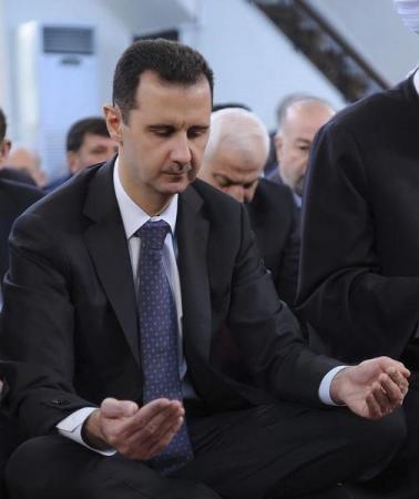 وأظهرت اللقطات التي بثها التلفزيون الأسد ينضم إلى المصلين في جامع الأفرم للاحتفال بالمولد النبوي. وكان يرتدي حلة داكنة وجلس في الصف الأمامي.
