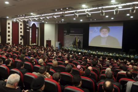 وكان نصر الله يتحدث إلى أنصاره في الضاحية الجنوبية لبيروت وفي بعلبك شرق البلاد وفي جنوبه عن طريق شاشات عملاقة بمناسبة الاحتفال بالمولد النبوي الشريف.