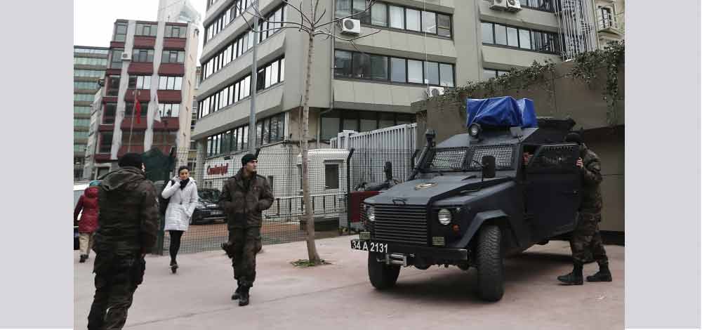 الشرطة نشرت قوات أمنية مكثفة أمام الصحيفة في انقرة خشية حصول تظاهرات. أ ف ب